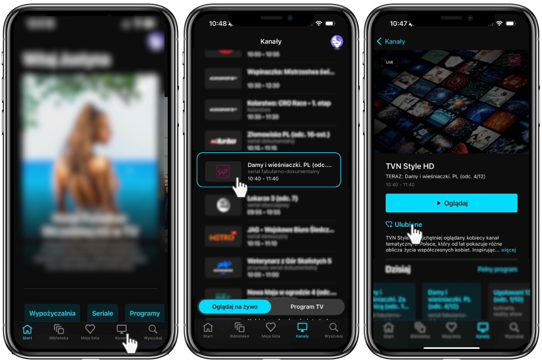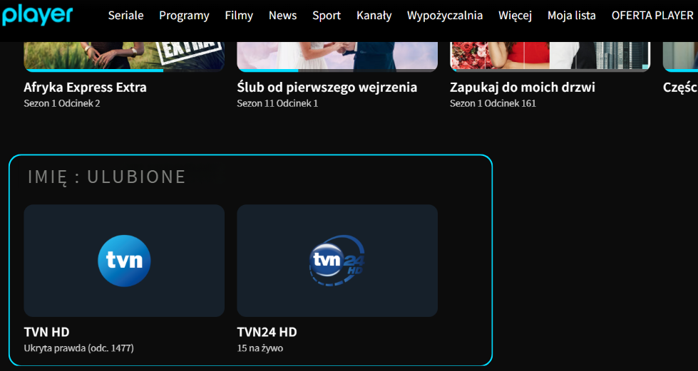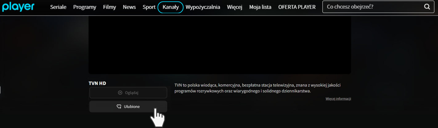 3. Wybrane kanały dołączą do innych programów i seriali w sekcji Ulubione w widoku głównym.