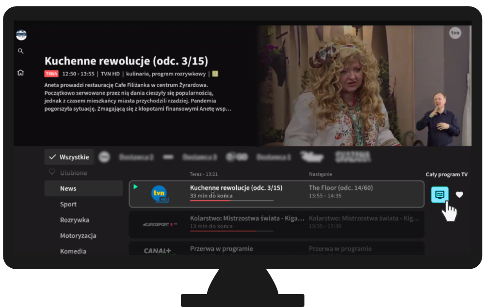 3. Program TV sprawdzisz, naciskając na ikonę telewizora (widoczną poniżej)