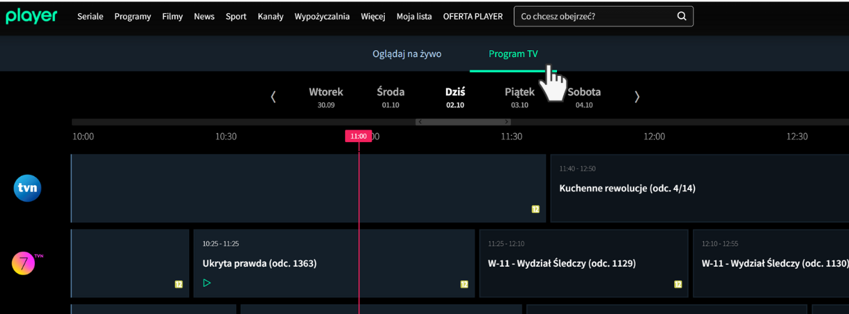 Pamiętaj, że nie masz możliwości obejrzenia materiałów na kanałach live, których emisja jeszcze się nie odbyła.