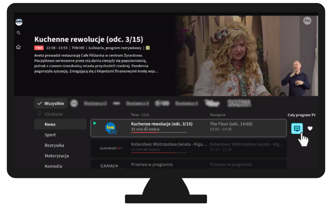 3. Program TV sprawdzisz, naciskając na ikonę telewizora (widoczną poniżej)