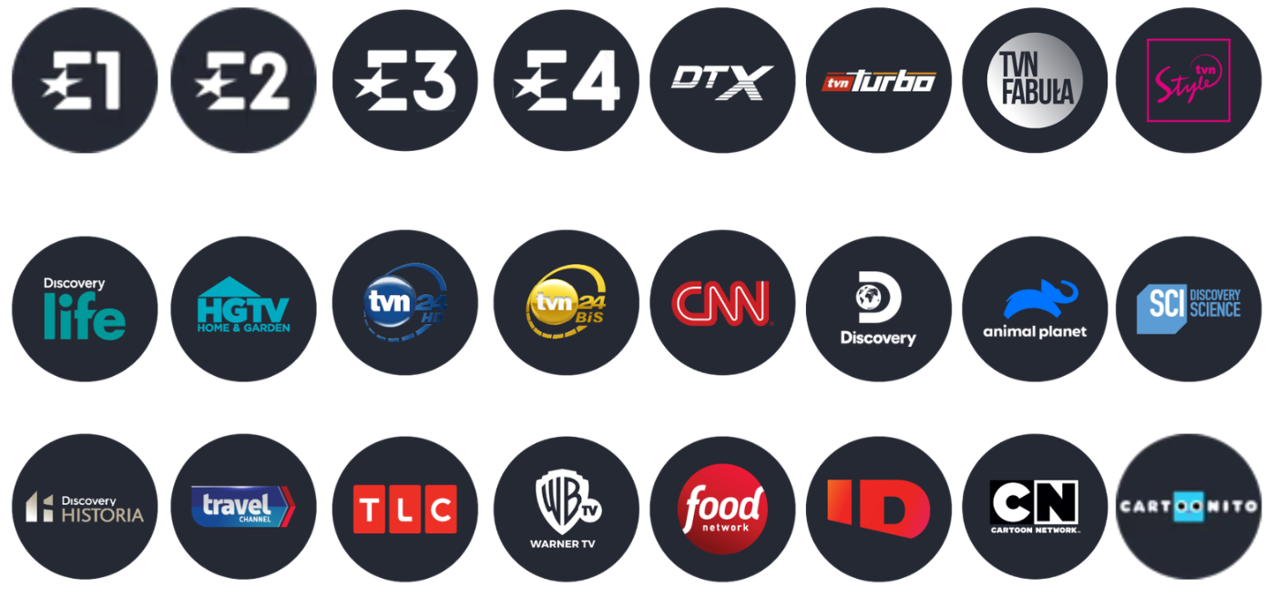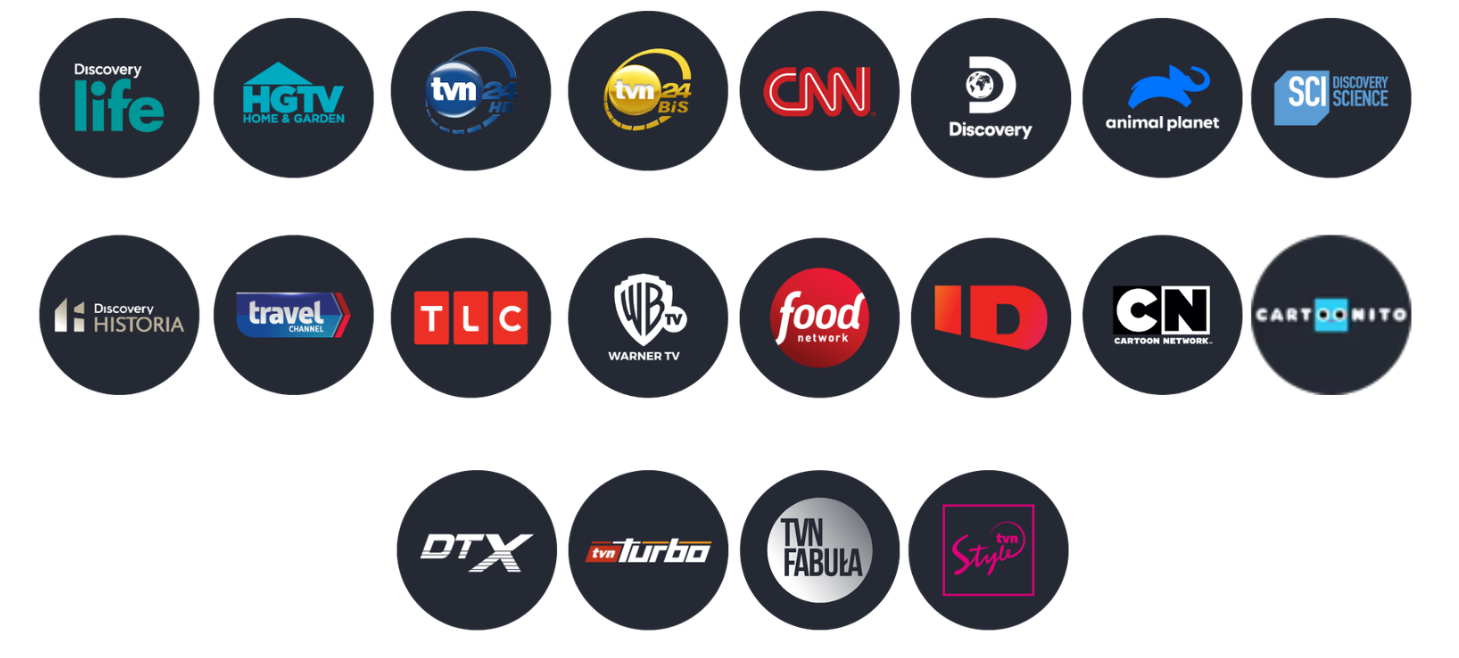 - 3 kanały informacyjne TVN24, TVN24BiŚ i CNN.
